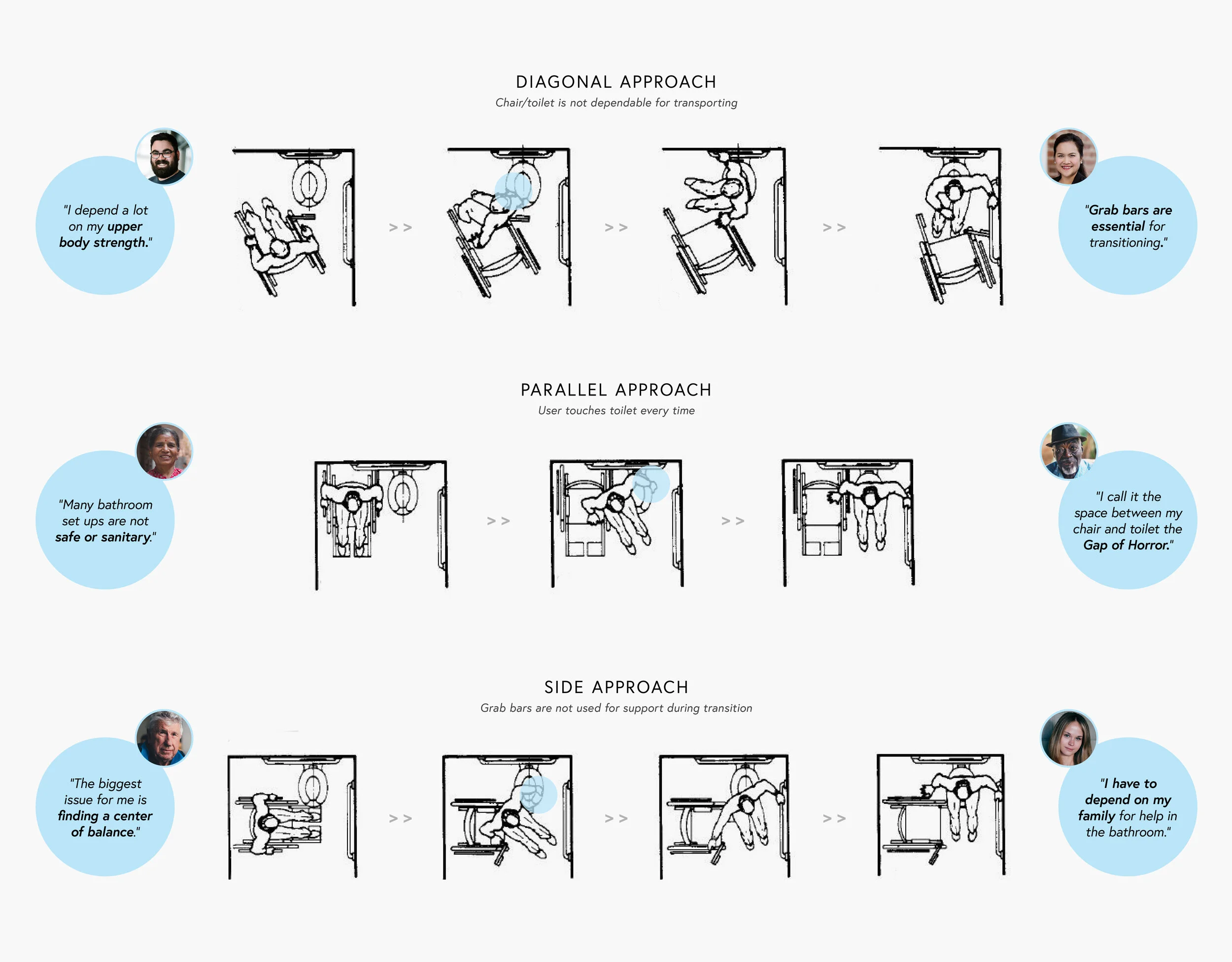 Common toilets are often difficult for persons who use wheelchairs. My goal was to create an easier, more independent solution, specifically focused on the transportation from chair to toilet. Many solutions that currently exist limit the user rather than assist and are often awkward to use. This project was initially sponsored by Delta Faucet for a competition in which I won first place. The concept also earned a Bronze in the International Design Excellence Awards in 2014.